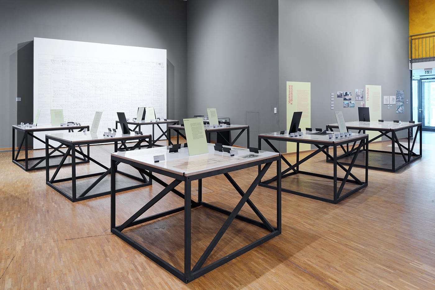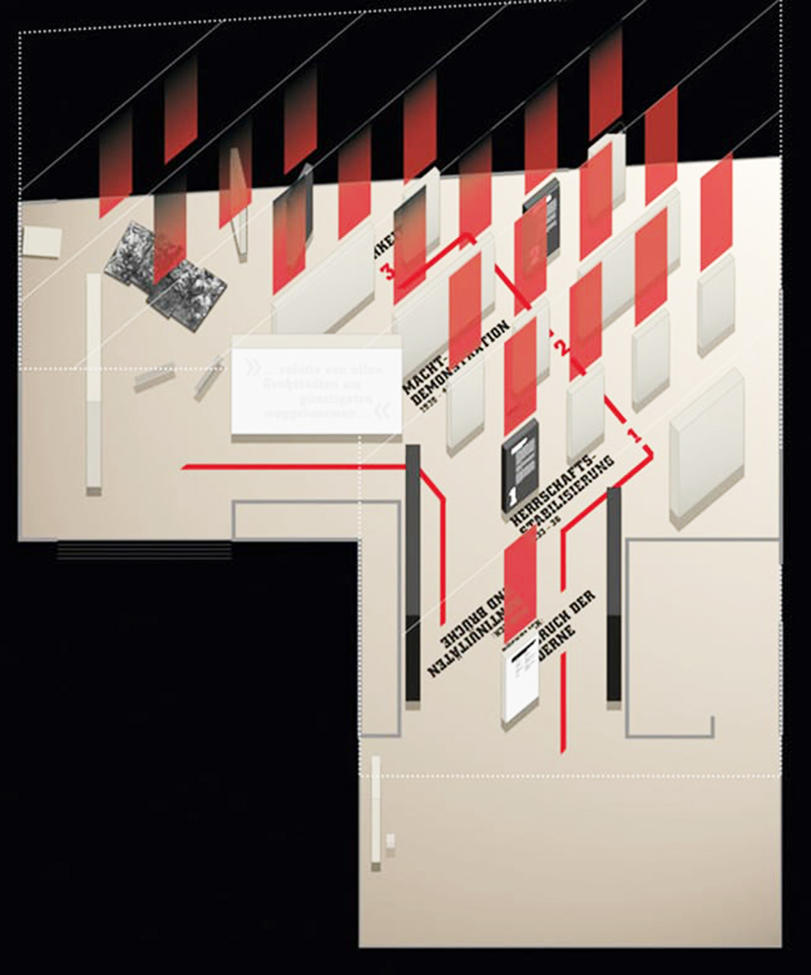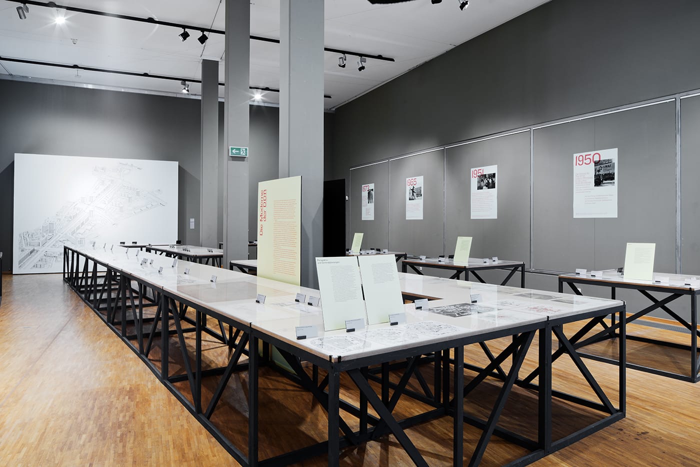 “Visionär” (1918–1933), “Totalitär”* (1933–1945) and “Plan!” (1945–1976) address the specifics of each era with their spatial and graphic concept: bold, dramatic or highly rational in form, placing the audience in the respective historical and architectural context in the process.