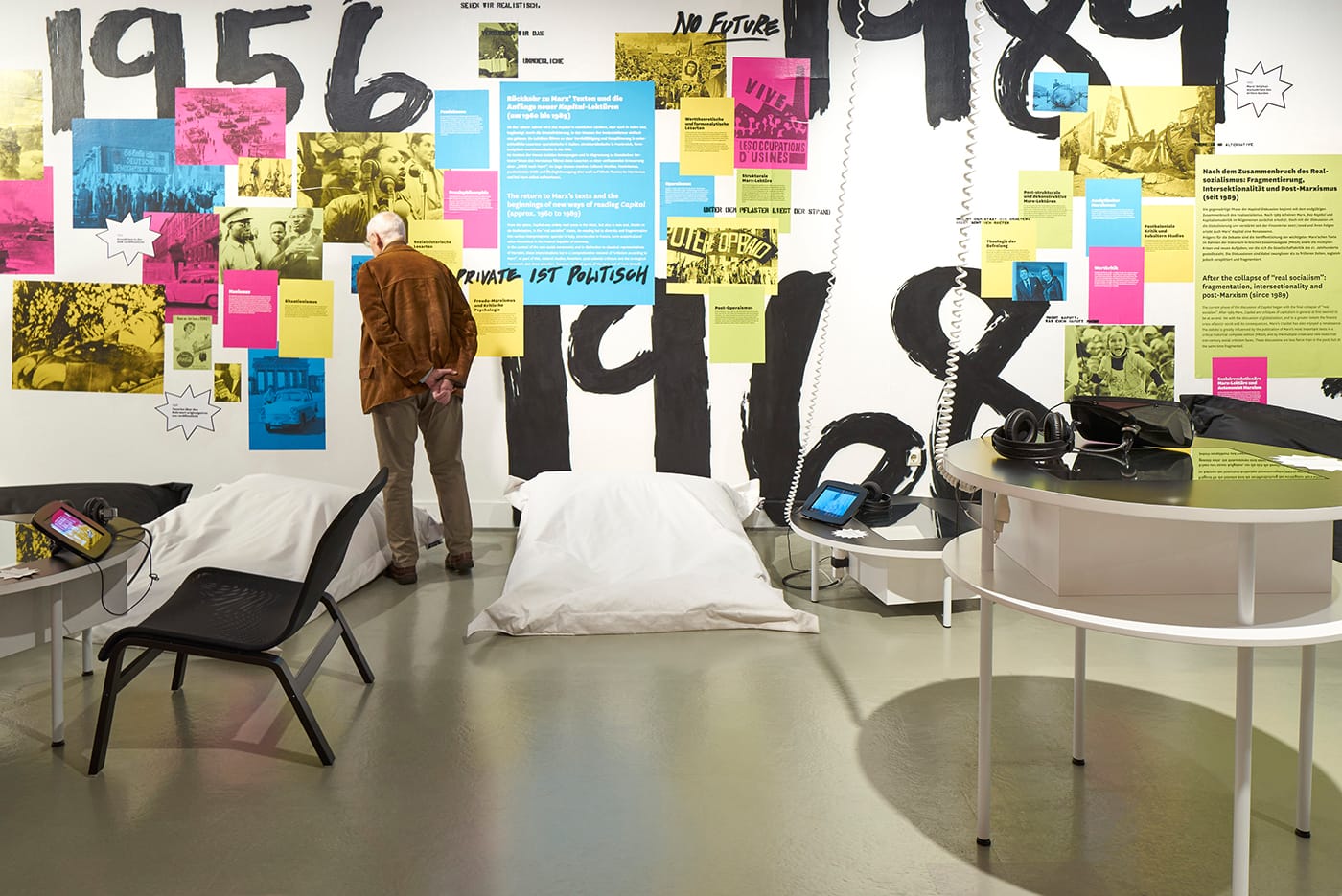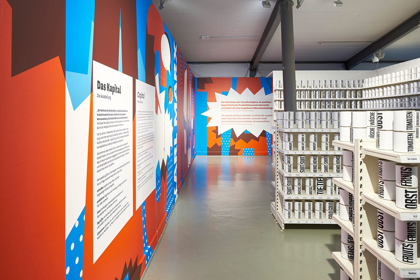 Happy Birthday, Kapital! Mit einer Sonderausstellung macht das Hamburger Museum der Arbeit »das Kapital« zugänglich für neue Zielgruppen. Anlass ist der 150. Geburtstag der Erstveröffentlichung von Marx Hauptwerk. Laut, bunt und poppig übersetzt das gestalterische Konzept die verschiedenen Kapitel des Buchs in die Jetztzeit, eröffnet neue Sichtweisen auf das Werk und betont die unveränderte Aktualität vieler Thesen und Fragestellungen.