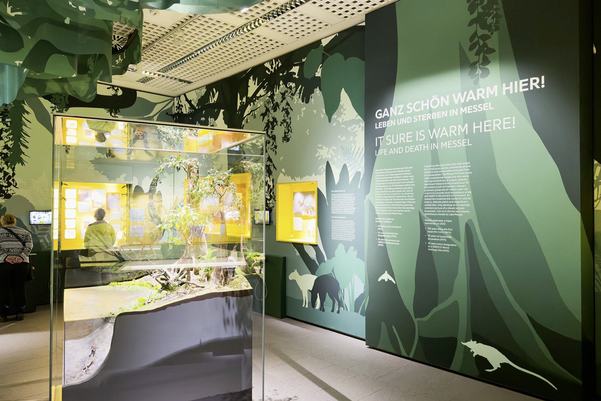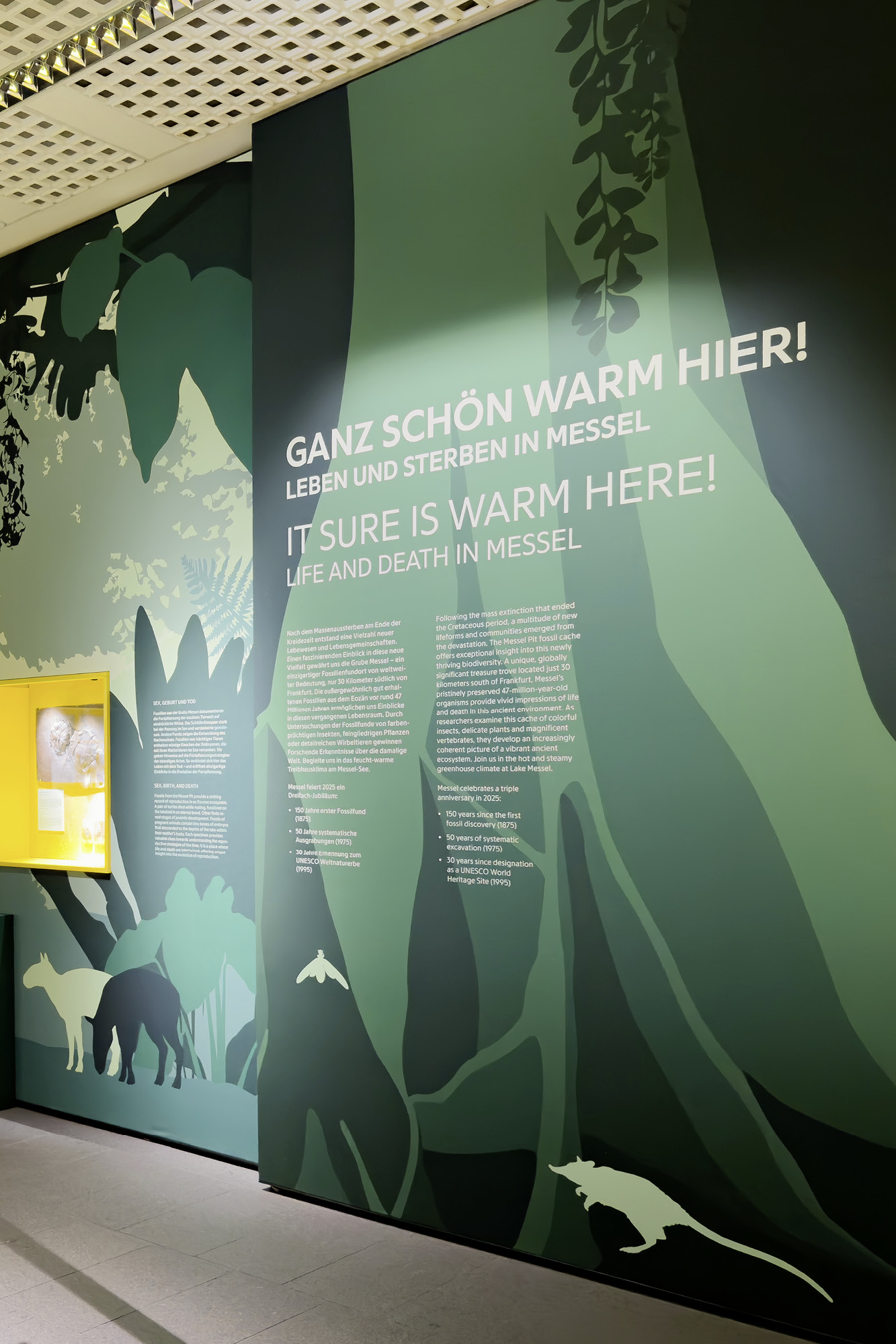Im Jubiläumsjahr der Grube Messel ergänzt die Sonderausstellung »Ganz schön warm hier! Leben und Sterben in Messel« den Bereich »Grube Messel« im Senckenberg Naturmuseum Frankfurt. Von Anfang Dezember 2025 bis Ende 2026 lädt sie dazu ein, die Lebenswelt vor 47 Millionen Jahren zu entdecken. Im Zentrum steht ein detailreiches Miniatur-Landschaftsmodell des damaligen Vulkankrater-Sees, das Einblicke in das Leben über und unter Wasser ermöglicht. Die Grube Messel gilt als einzigartiger Fossilienfundort: Über 1.400 verschiedene Lebensformen – von Pflanzen, Pilzen und Insekten über Fische, Reptilien und Vögel bis hin zu Säugetieren – wurden hier außergewöhnlich gut erhalten. Realistische Modelle, Originalfossilien und eindrucksvolle Rekonstruktionen machen dieses »versteinerte Ökosystem« lebendig und erzählen von Biodiversität, Klima, Nahrungsketten sowie Geburt und Tod in einer erstaunlich warmen Urzeitlandschaft.