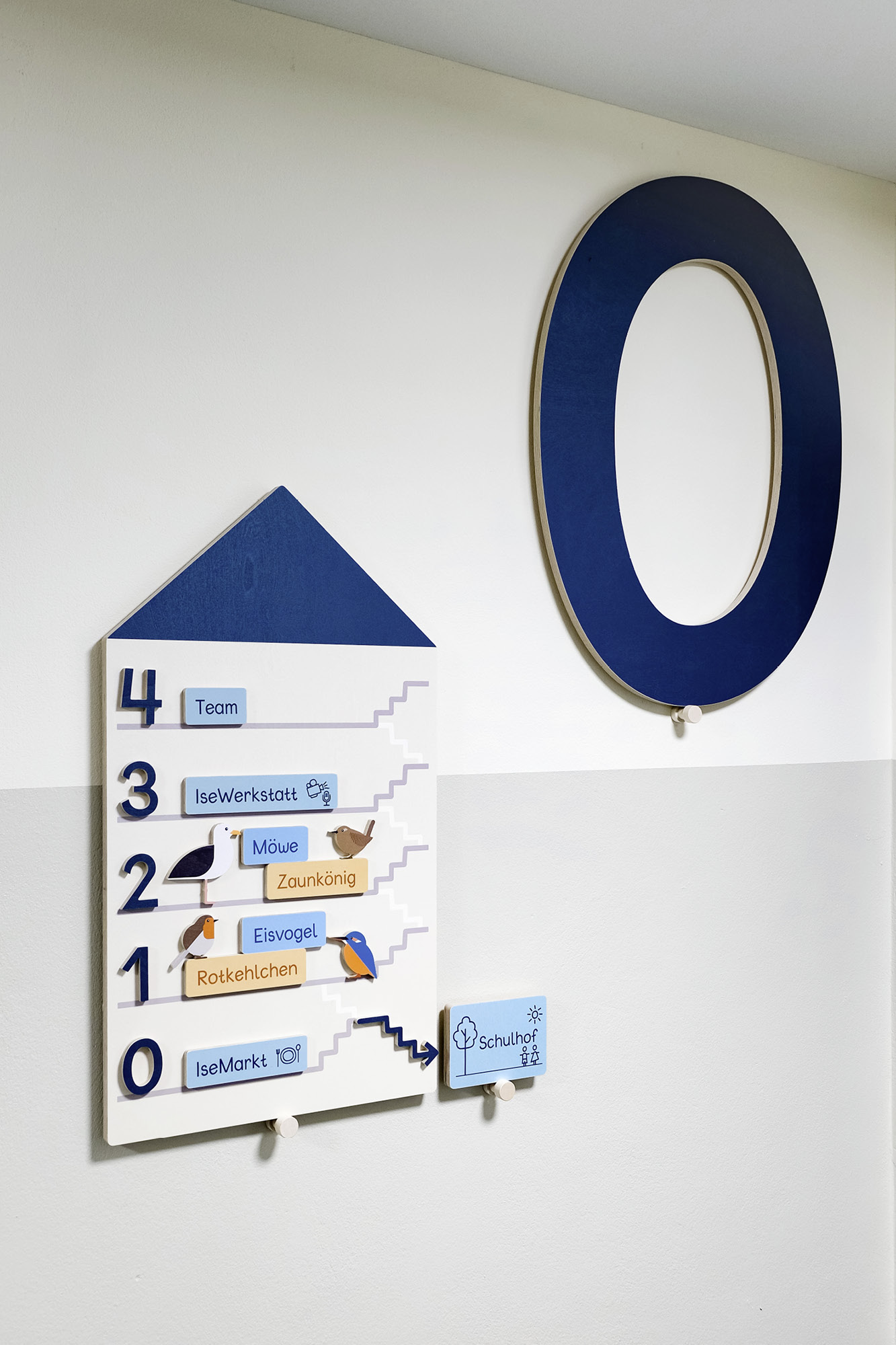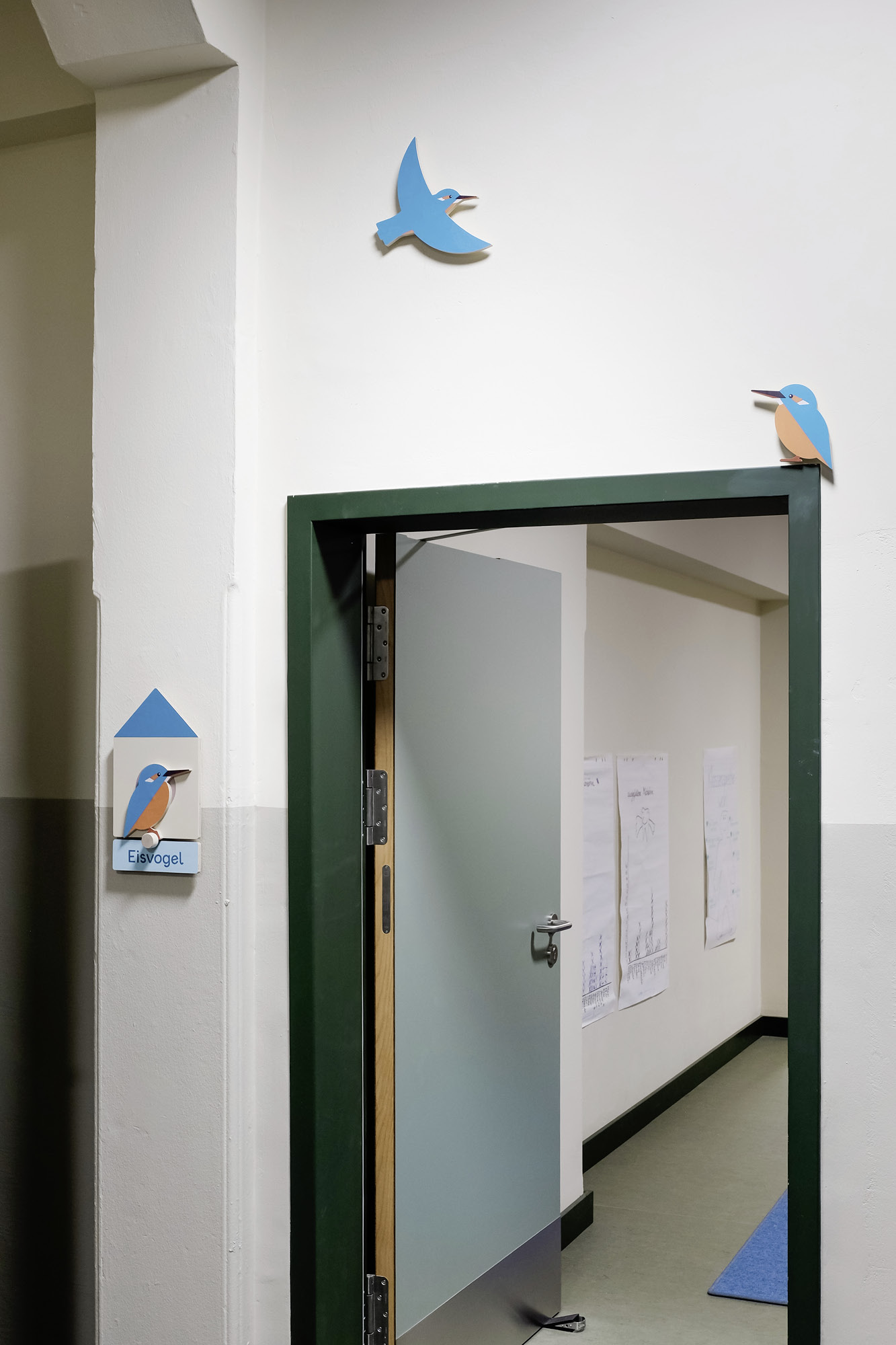 Die Kinder bewegen sich in großzügigen Compartments, die wie kleine Nester gestaltet sind und jedem Team ein eigenes »Vogelzeichen« als Identität geben. So finden sie sich im Gebäude zurecht und spüren zugleich, dass sie Teil einer größeren Gemeinschaft sind.