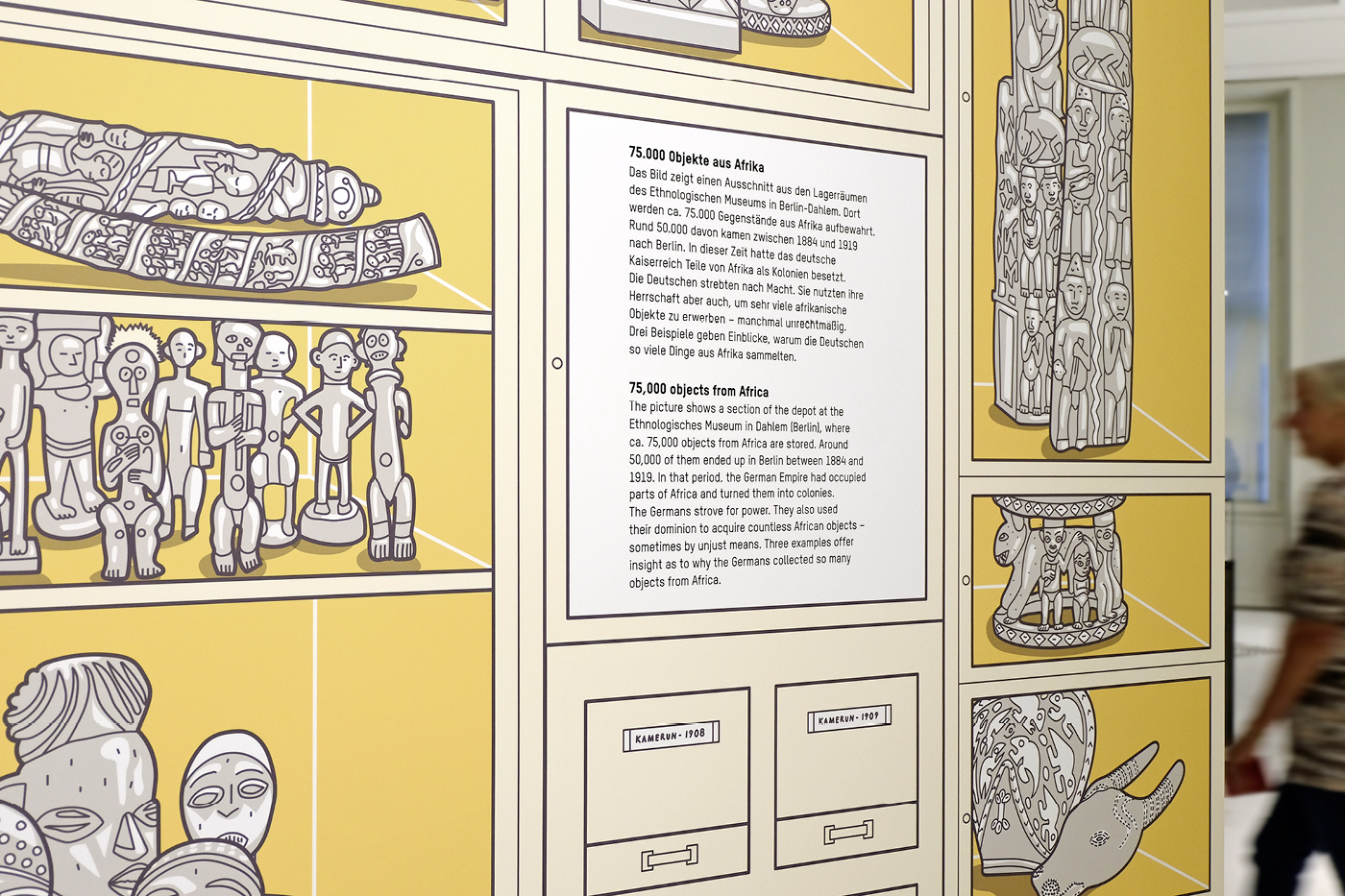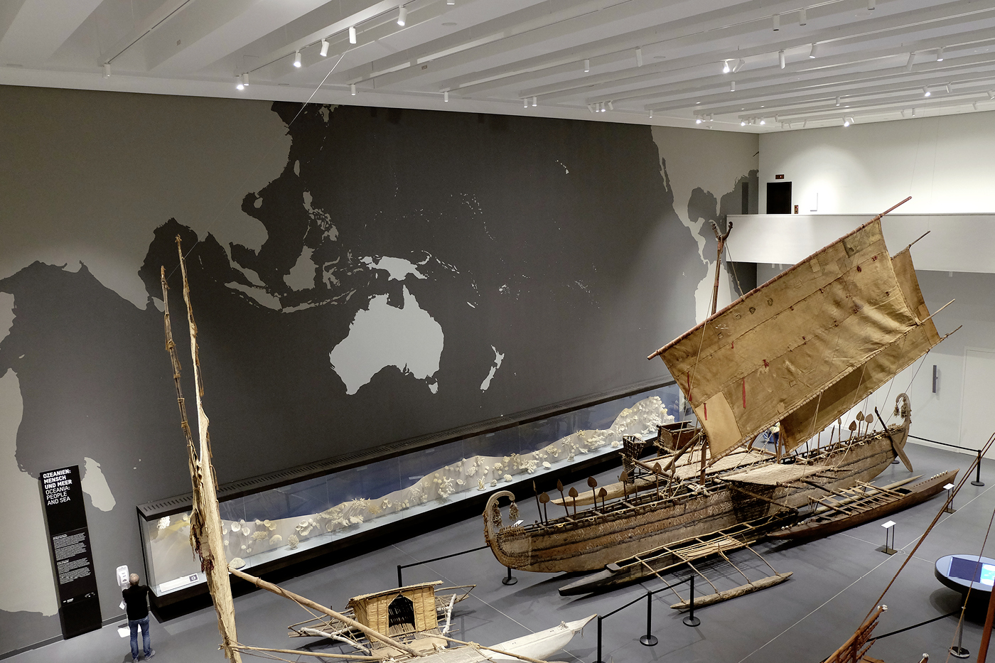 Wie kann man Beschriftungen für rund 20.000 Exponate in über 60 Räumen auf 25.000m², 3 Ebenen und in 3 Museen so planen, layouten und produzieren lassen, dass diese pünktlich gemeinsam mit den Exponaten platziert werden können? Oder wie bekommt man eine 28×11m-große Karte Ozeaniens an die Wand? Mit einem sehr hohen Maß an Strukturierung, transparenten Abläufen und einem exzellenten Projektmanagement. Um nur ein paar Anforderungen an dieses komplexe Projekt zu erwähnen…