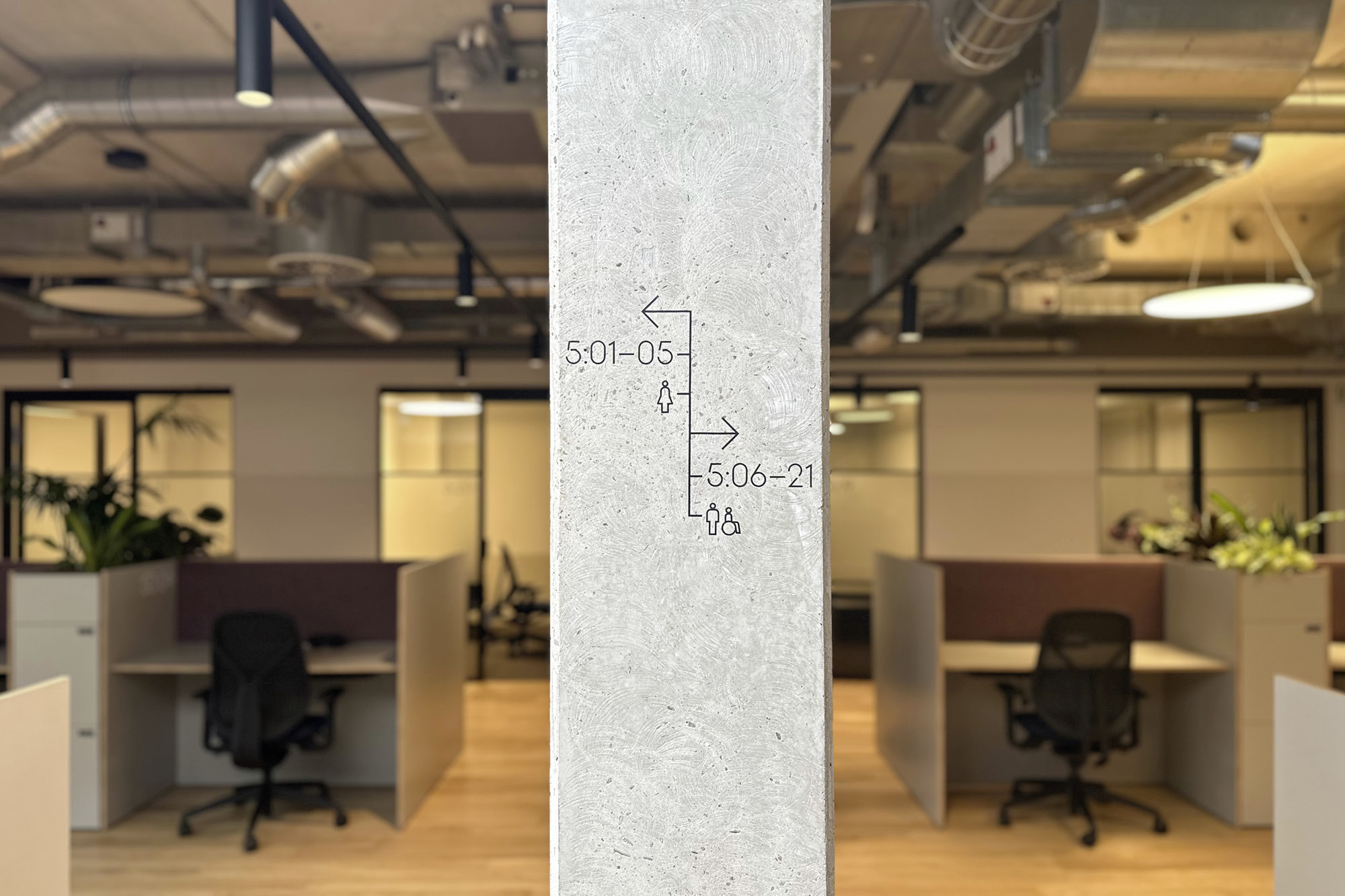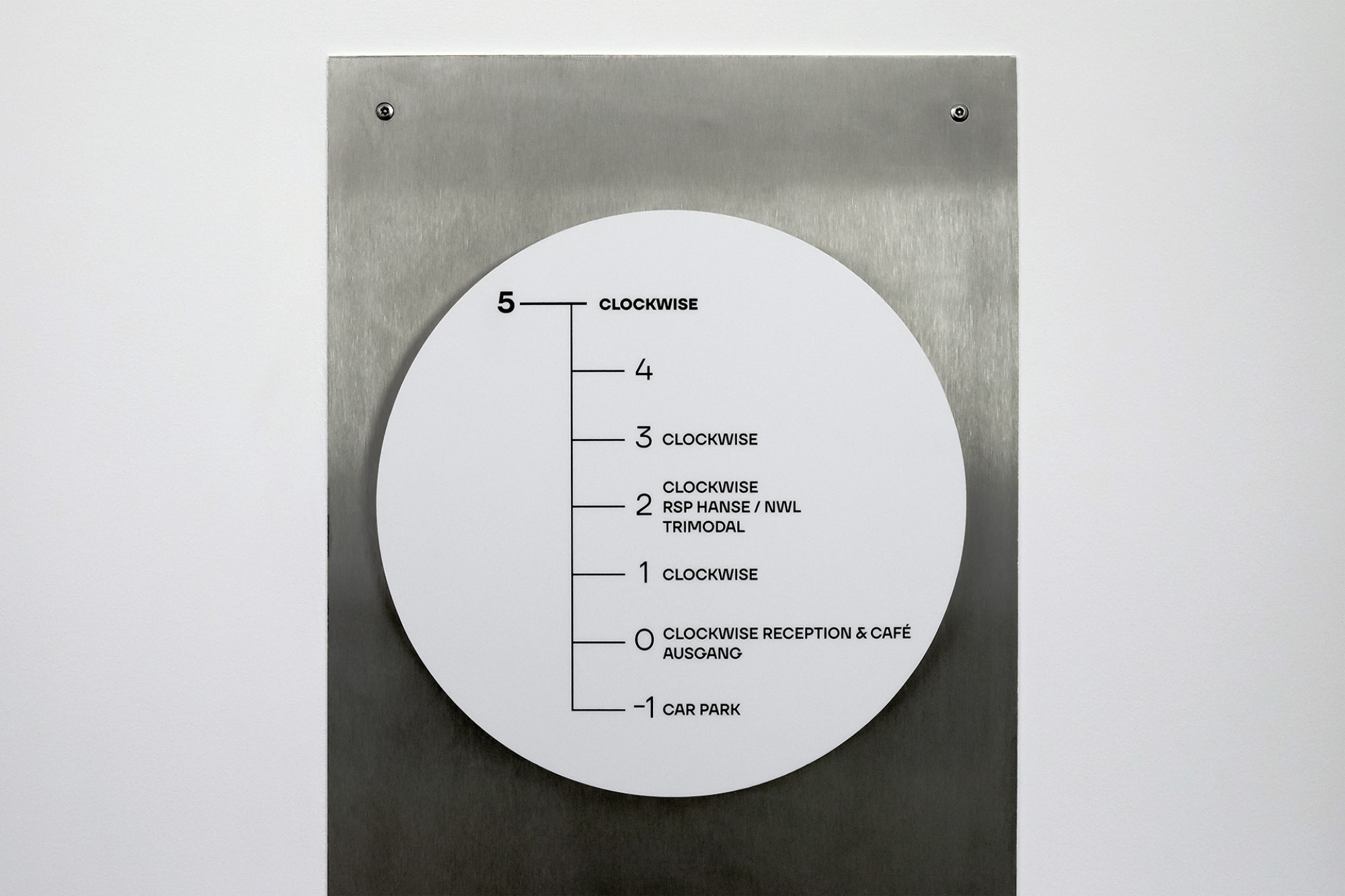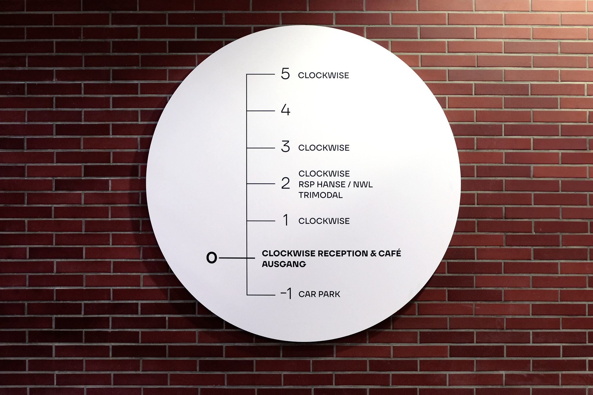 Raus aus dem Homeoffice, auf zum Co-Working-Space! Ob zum nächsten Meeting-Room, zum Pod oder zur Lounge, bei der Navigation durch die Etagen und Räume ist auf die Signaletik Verlass. Stylish reduziert im Clockwise-Spirit und mit maritimem Touch, steht das Orientierungssystem in der Bremer Filiale des britischen Co-Working-Space-Anbieters für Identitätsstiftung.