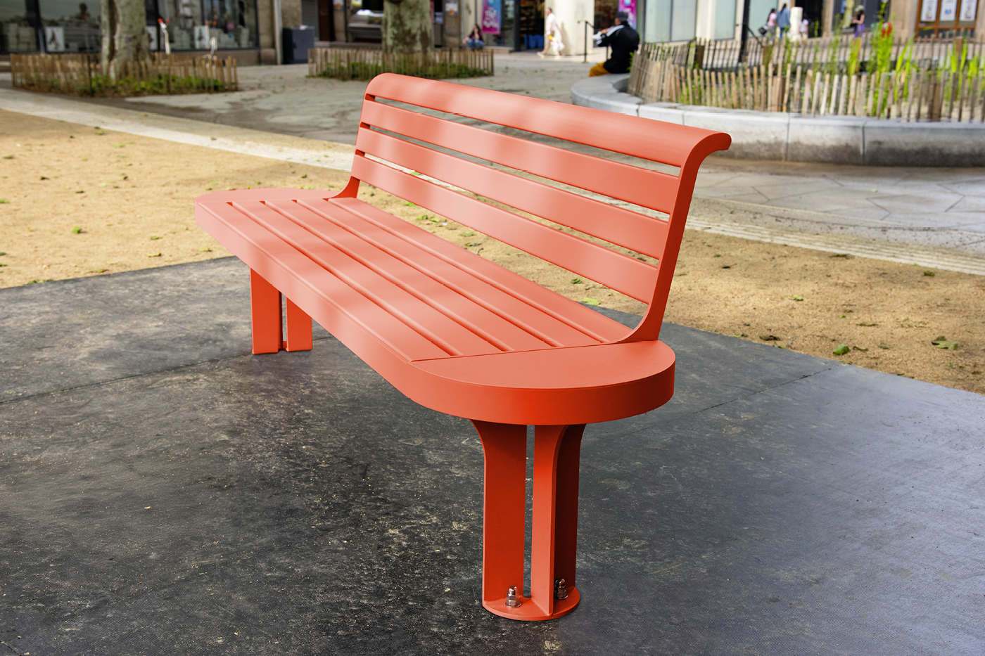 Simple and unpretentious. ‘ELOA’ is a bench that leans upon the tradition of the Arts Décoratifs arts and crafts movement and was created for both a contemporary or historical urban context as well as for a green setting. An object with architectural connotations, independent whilst at the same time easy to integrate. ‘ELOA’ is available with or without a backrest, made completely from steel or with a seat made from black locust wood. It comes in a wide range of colours – an example of furniture design that combines unpretentiousness and elegance.