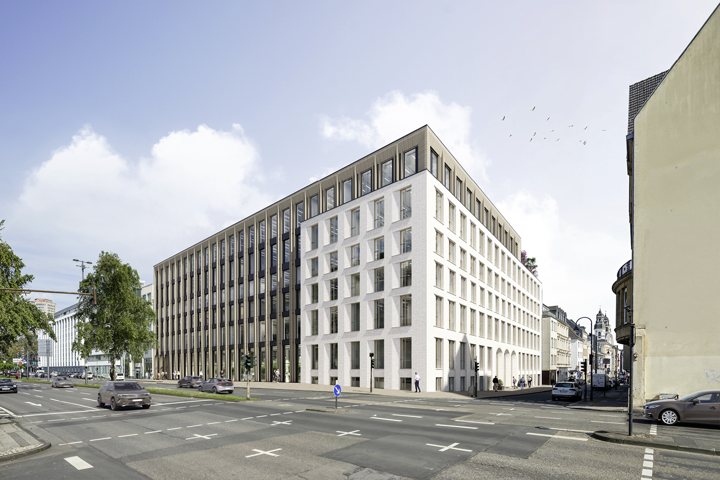Today, the existing structure is undergoing a meticulous core renovation and is being expanded with a new addition. The architectural concept, developed by Cologne-based firm Caspar. on behalf of the project developer Art-Invest Real Estate, deliberately fosters a dialogue between the building’s “historic” fabric and a contemporary architectural language – both inside and out.