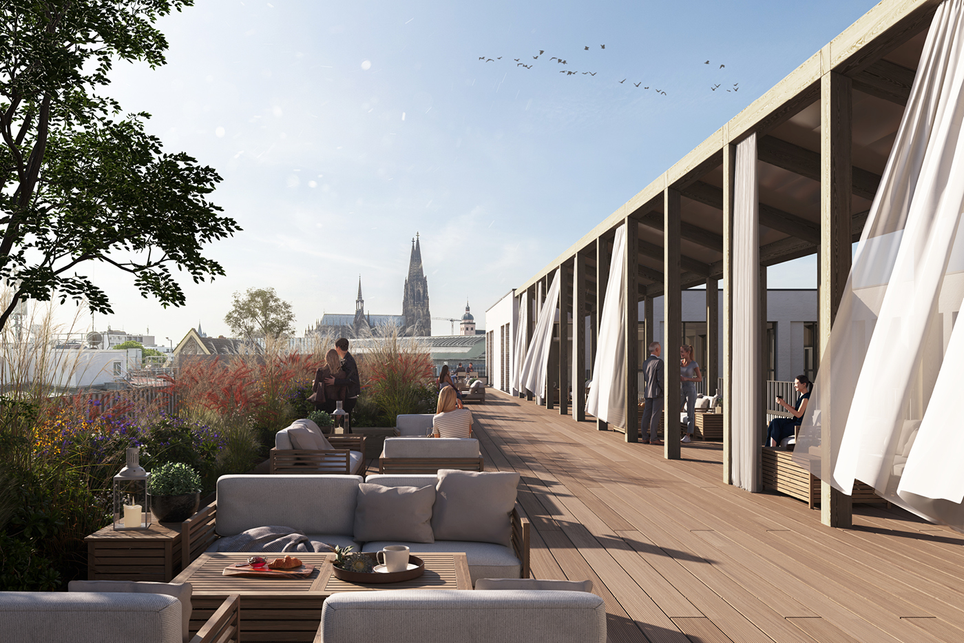 Where once there were bathing rooms, new spaces for conferences or work are now being created. And for moments of relaxation, the terrace—with its breathtaking view of Germany’s most famous cathedral—offers the perfect retreat. Naturally, well-designed wayfinding will also contribute to a perfect visitor experience.