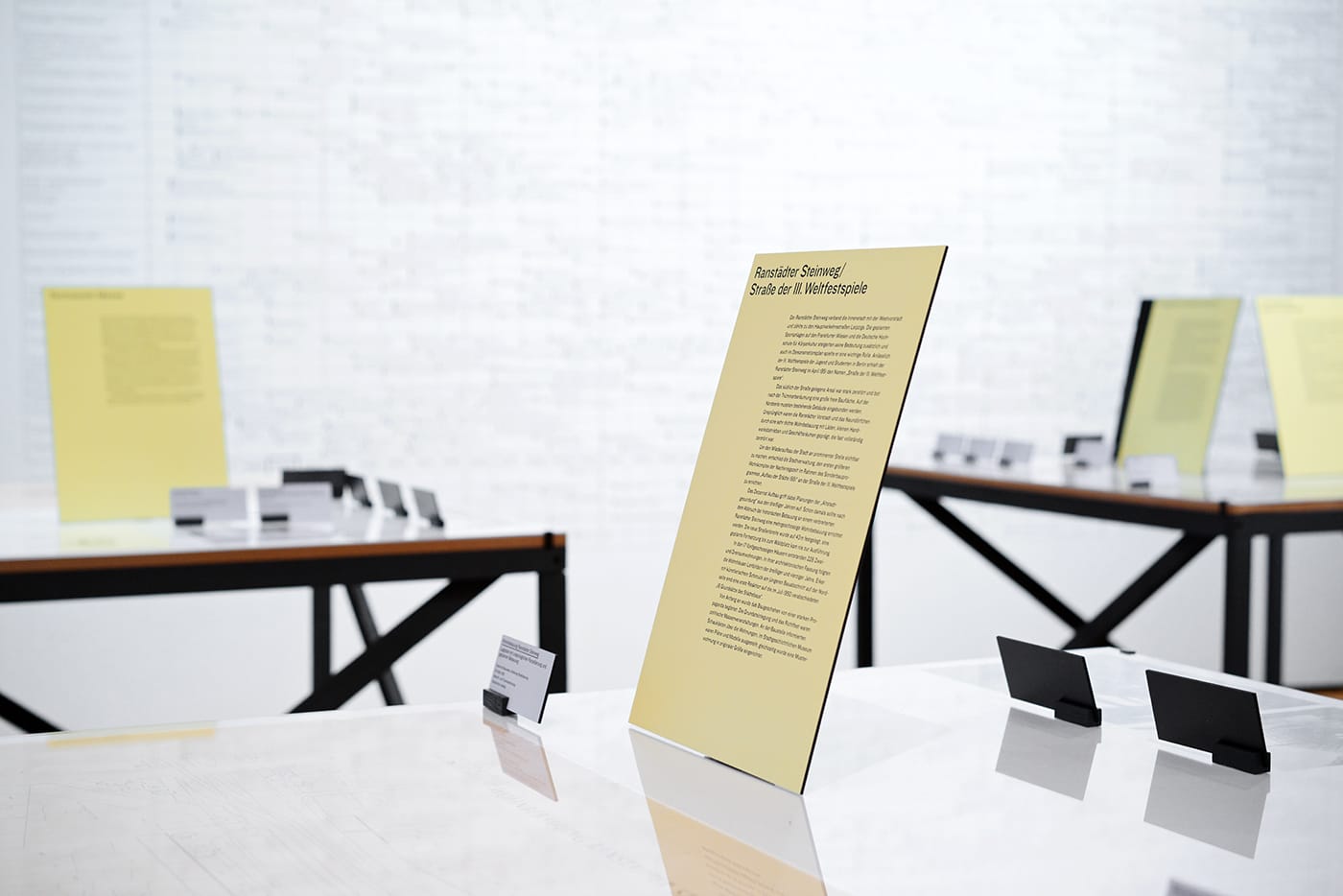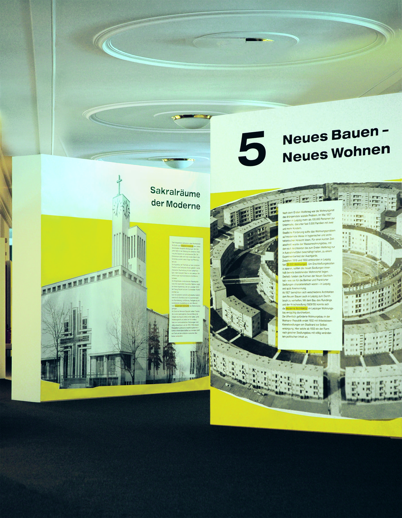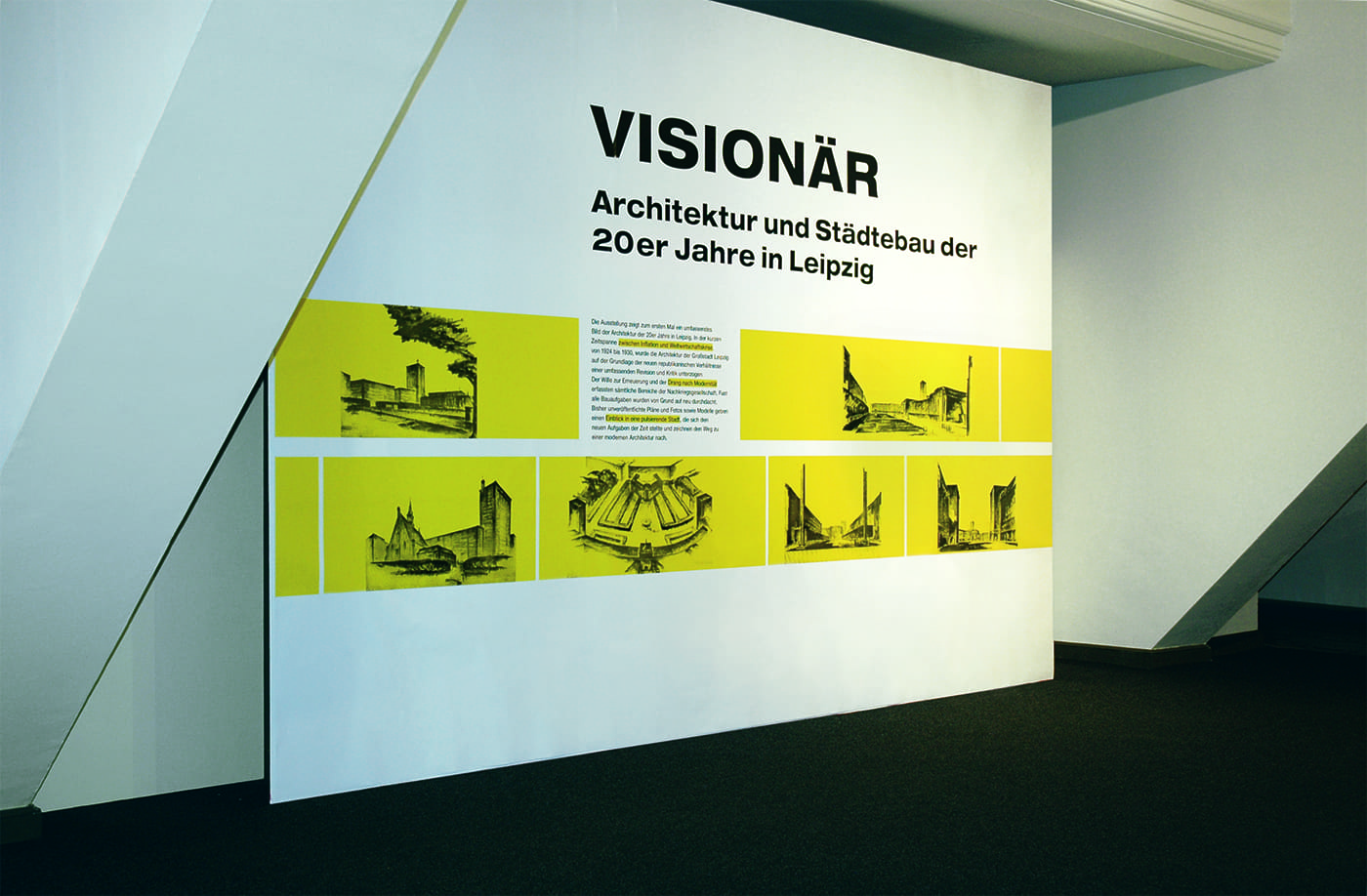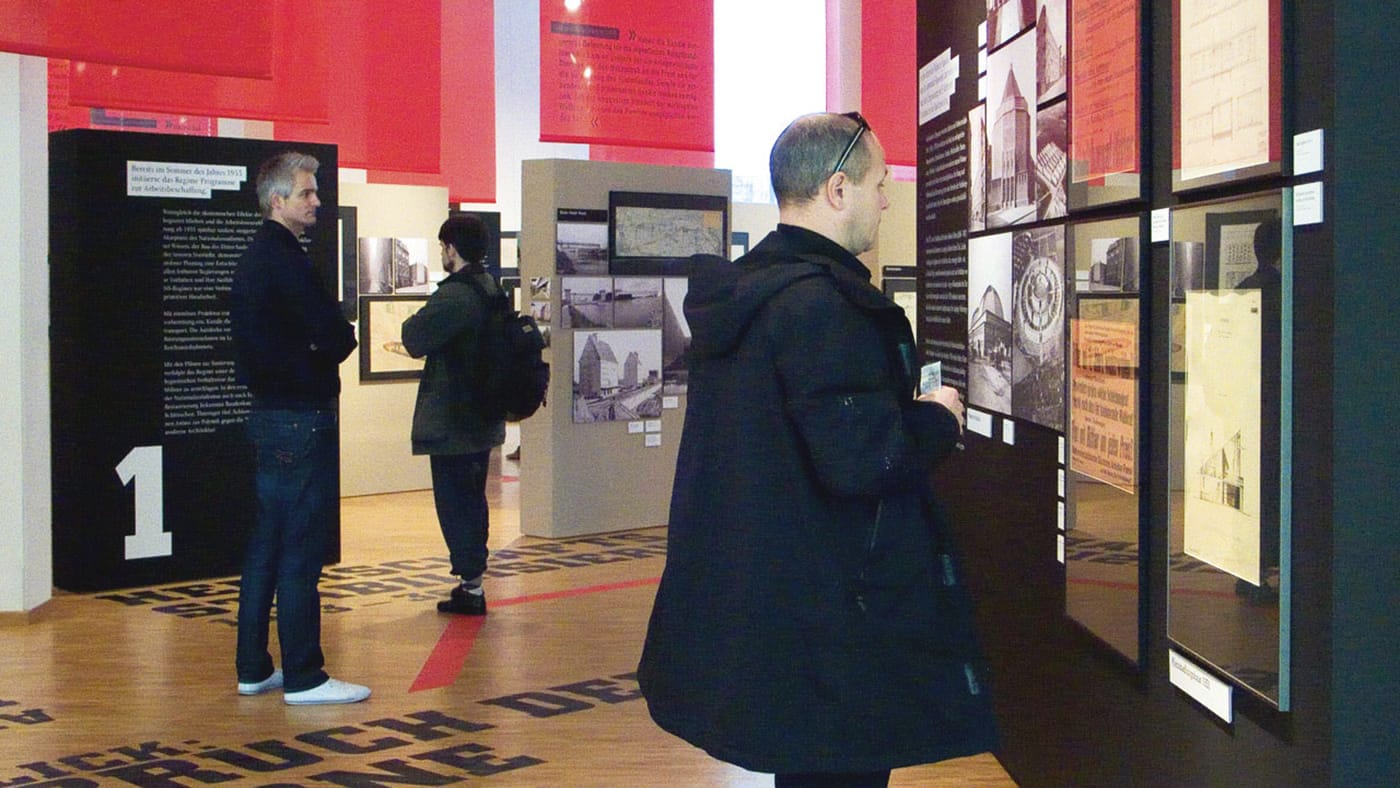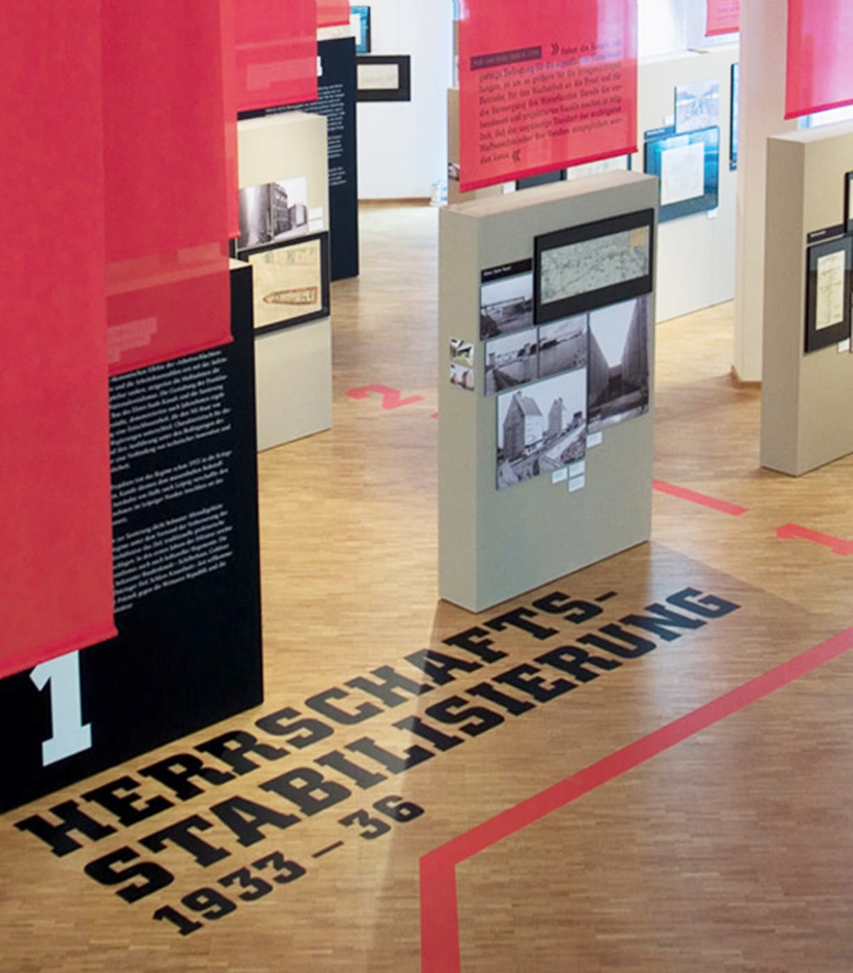 “Visionär” (1918–1933), “Totalitär”* (1933–1945) and “Plan!” (1945–1976) address the specifics of each era with their spatial and graphic concept: bold, dramatic or highly rational in form, placing the audience in the respective historical and architectural context in the process.