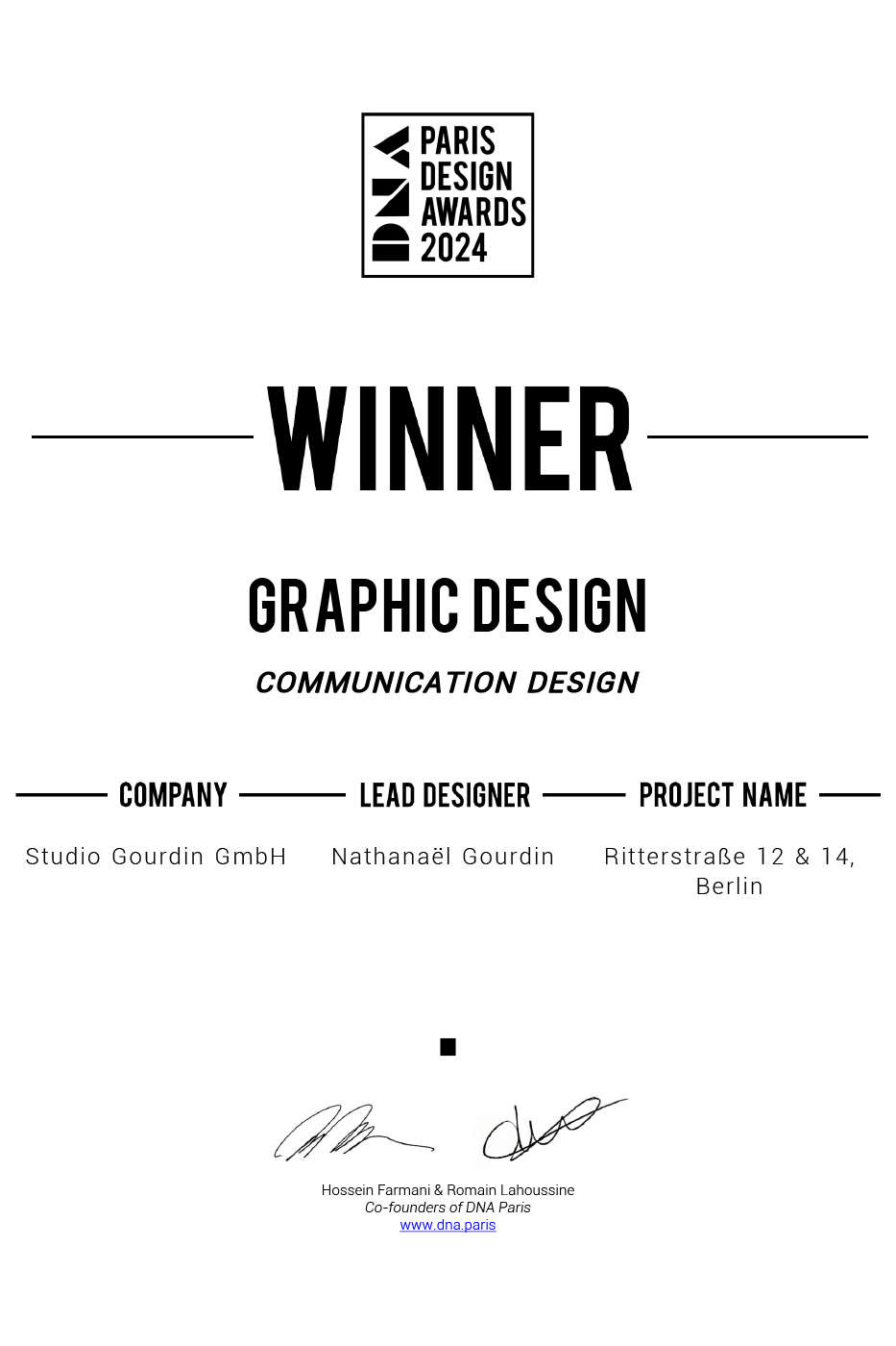 Die DNA Paris Design Awards zeichnen jährlich herausragende Projekte aus den Bereichen Architektur, Interior, Produkt- und Kommunikationsdesign aus. Die internationale Jury legt besonderes Augenmerk auf Innovationskraft und ästhetische Qualität. Wir bedanken uns für die Ehre!